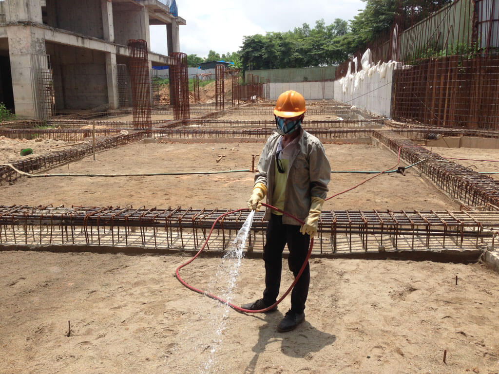 Ngoài ra cần phải được phun thuốc chống mối trước khi trải kín đều một lớp vữa bê tông.